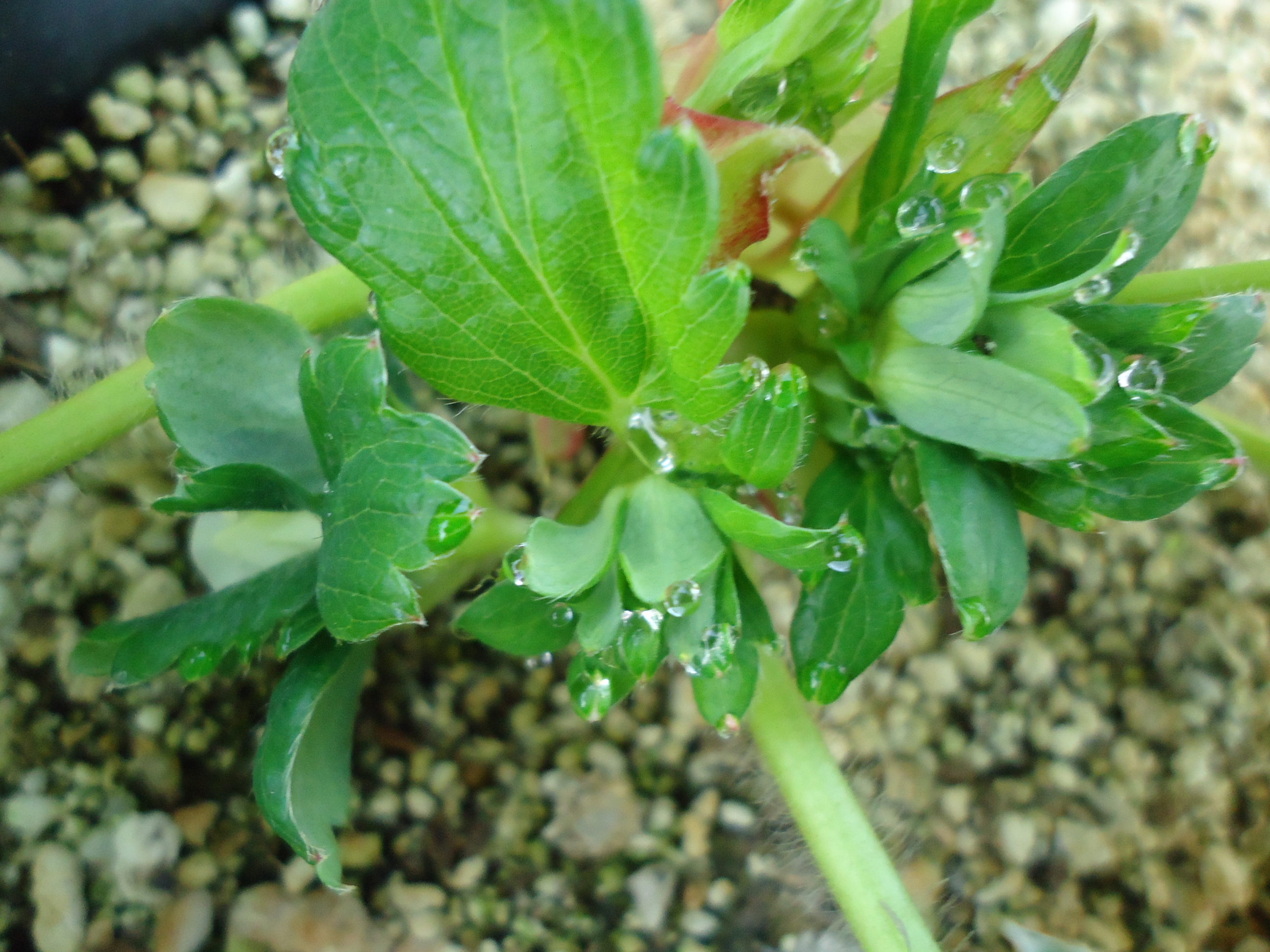 少し分かりづらいかもしれませんが、葉っぱの先に葉水がついているのが見えるでしょうか?これは、根が元気に土中の水分を吸い上げている証拠です。
