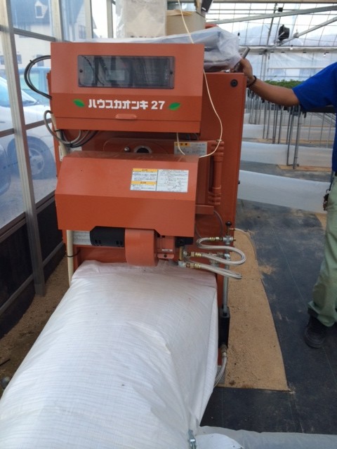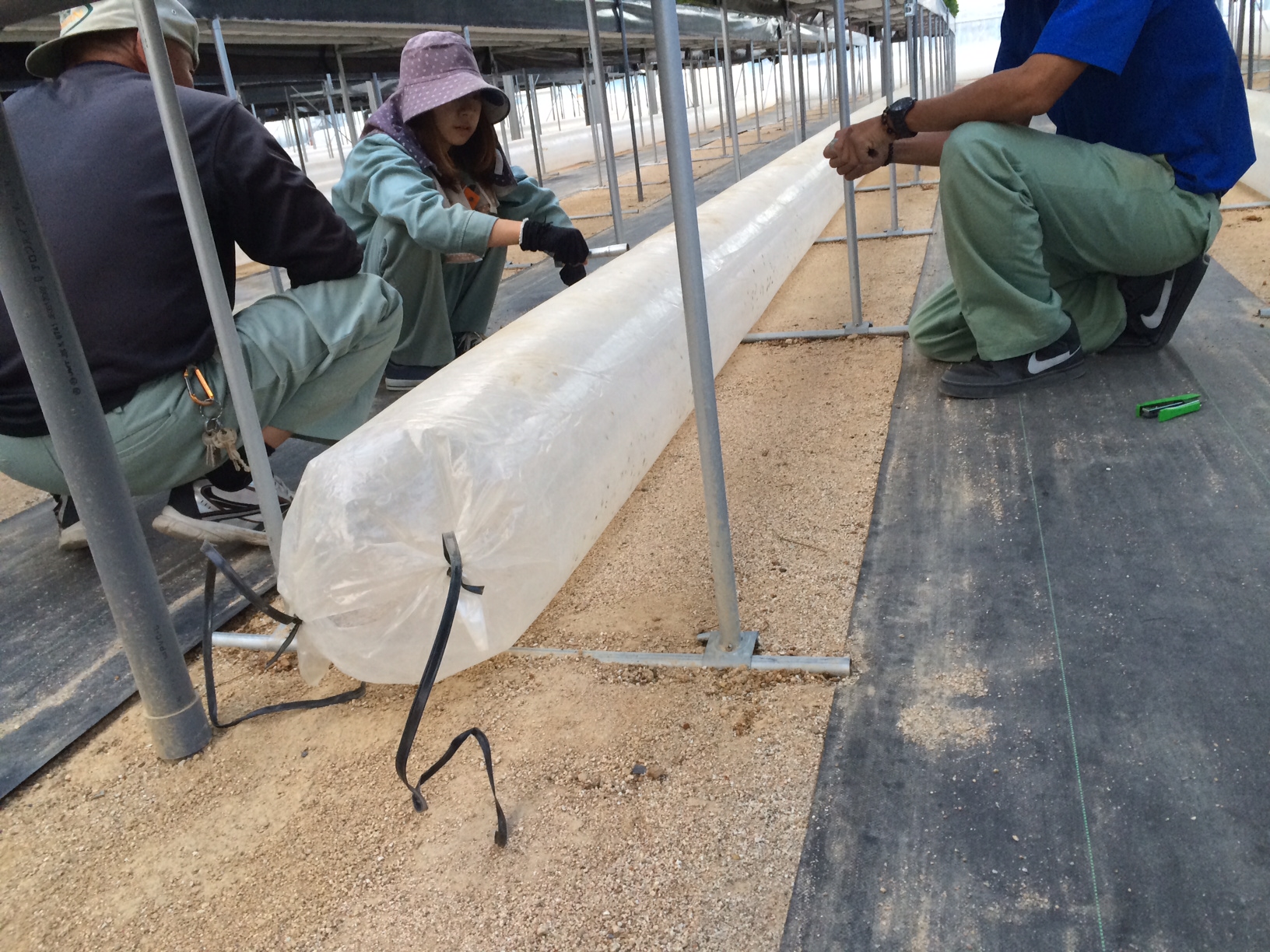 夜も寒くなったので、イチゴハウスを暖めるためのダクトを設置しました。