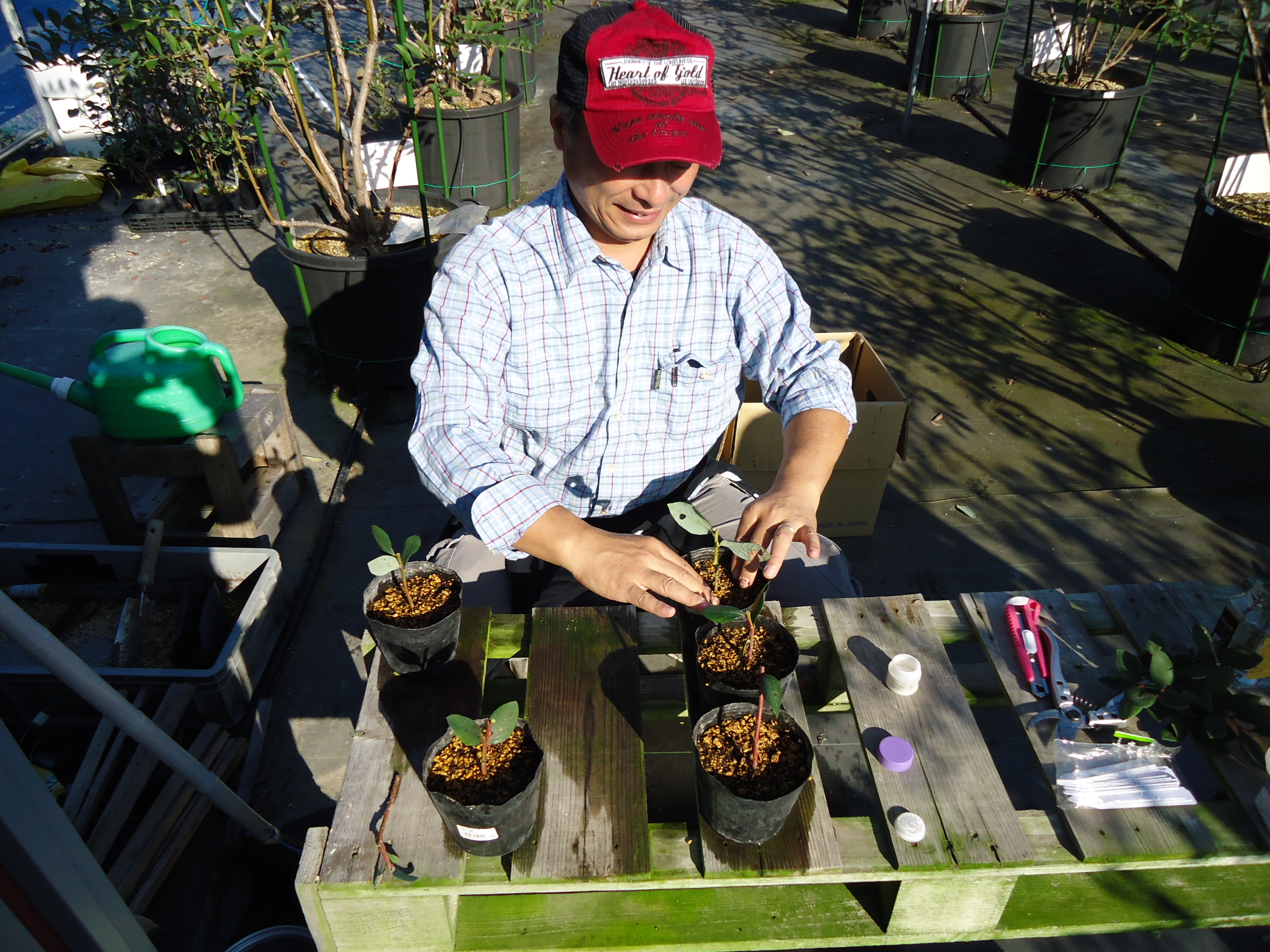そんなご縁で、今回当園にあるエイボンブルーの剪定した枝を利用した挿し木にチャレンジしに寄ってくださいました。