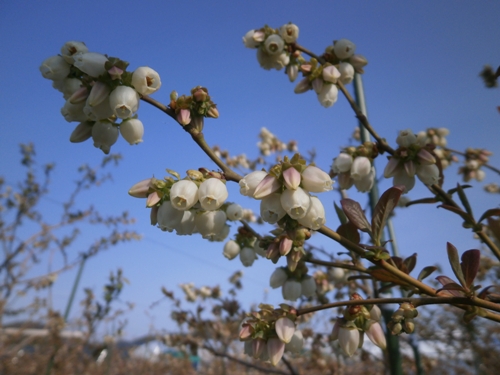 ブルーべりーの花が咲きました。とても可愛らしい形でしょ。これからの成長が楽しみです。